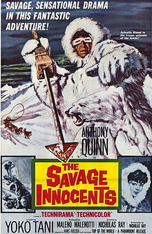 In the year, 1960 (when Anthony Quinn was an Eskimo), his great source of temptation was a gun. I say he was an ‘Eskimo’, because it really wouldn’t be appropriate to saddle any specific people with the cultural baggage of Savage Innocents. a pseudo-documentary narrator notwithstanding, this film is not about any real-world population so much as a certain imaginary people best called to mind by precisely this grotesque term. Like so many films about natives of the Arctic, Savage Innocents really isn’t a film about Inupiaq, Inuit, Yupik, or even Chupik. It is most certainly a film about Eskimos, and that is a topic that has interested movie-makers long before the general public learned to think twice about such vocabulary. Anyway, when Anthony Quinn was an Eskimo, it was his introduction to the gun that kicked off a crises (and hence the story) of Savage Innocents.