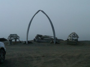 The Ocean as Seen from Barrow’s Cafe (Whale jawbones and umiaq frames)